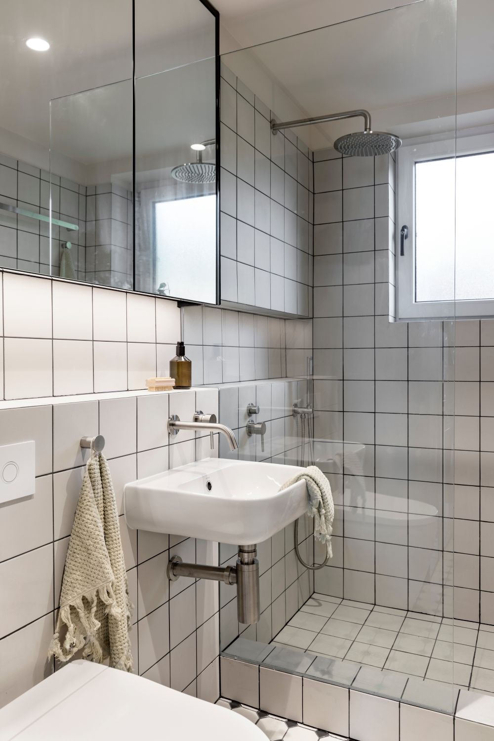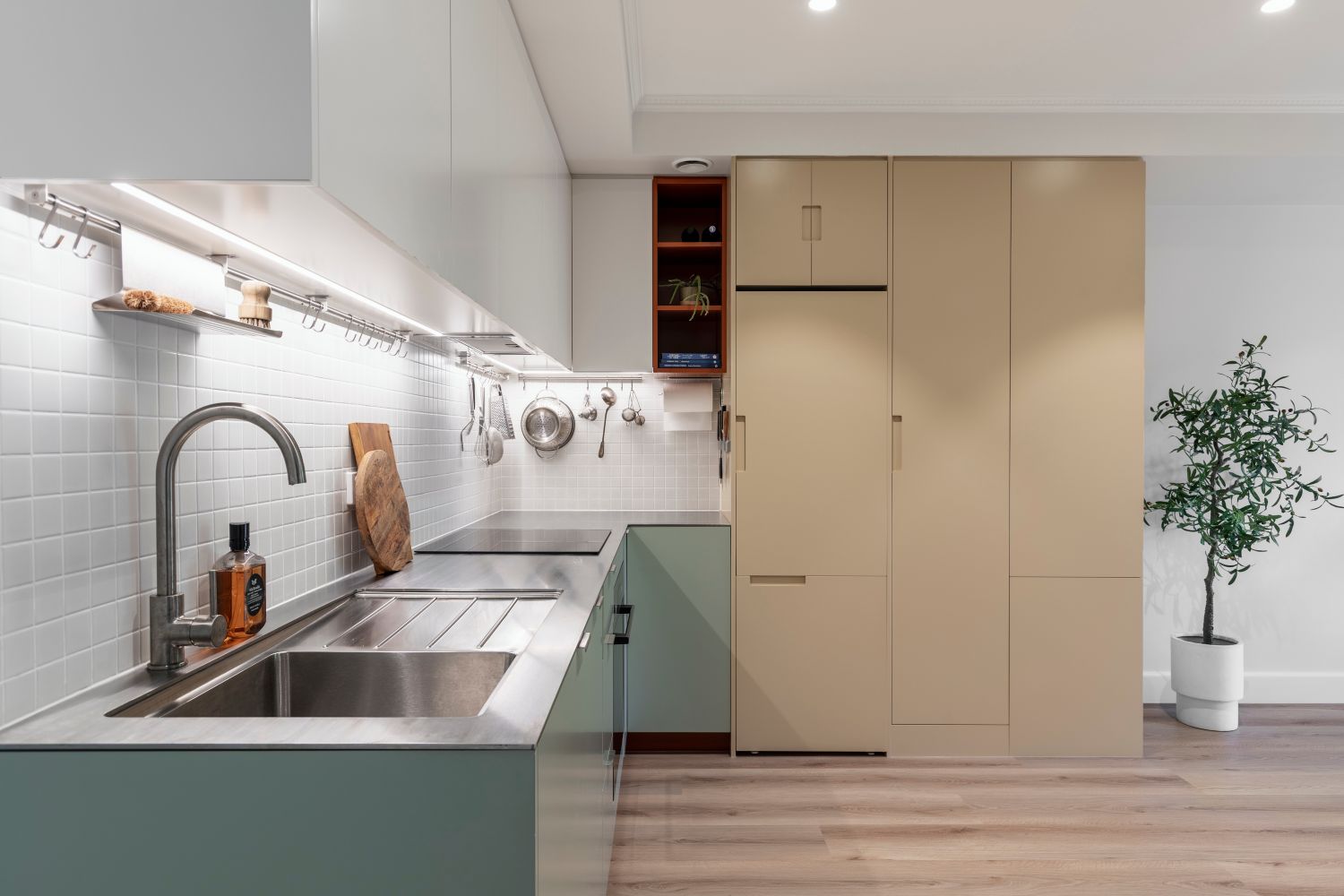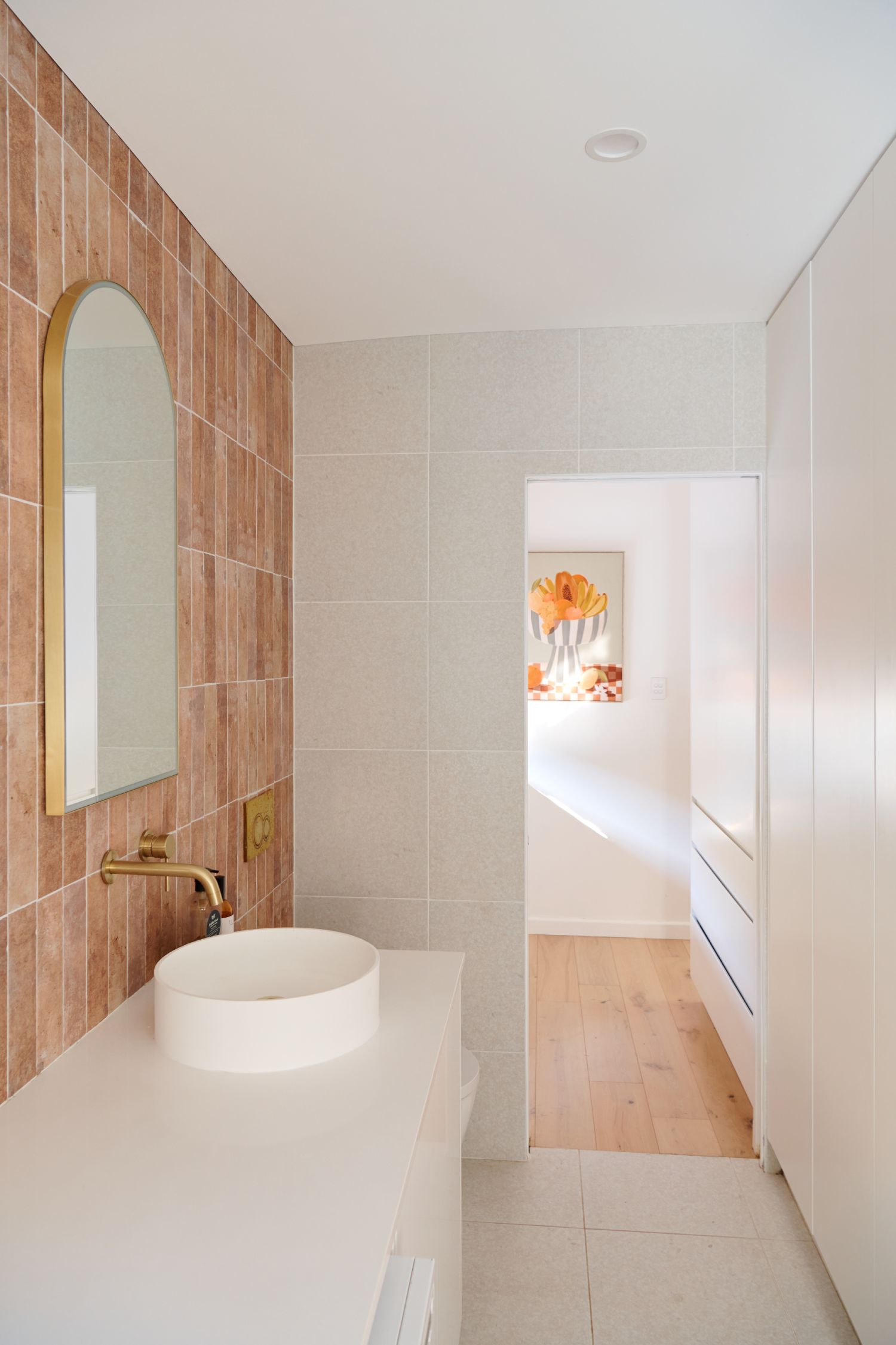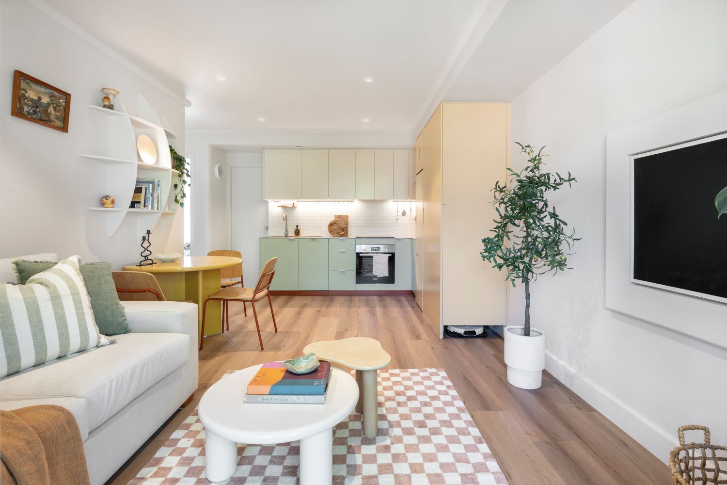 Unit renovation completed in line with Passive House EnerPHit standards. This project achieved an exceptional airtightness rating of 0.70 air changes per hour, significantly surpassing the typical requirement of 1.0 for renovations. The design preserves the original character with deep window reveals, detailed cornices and tessellated bathroom tiles.